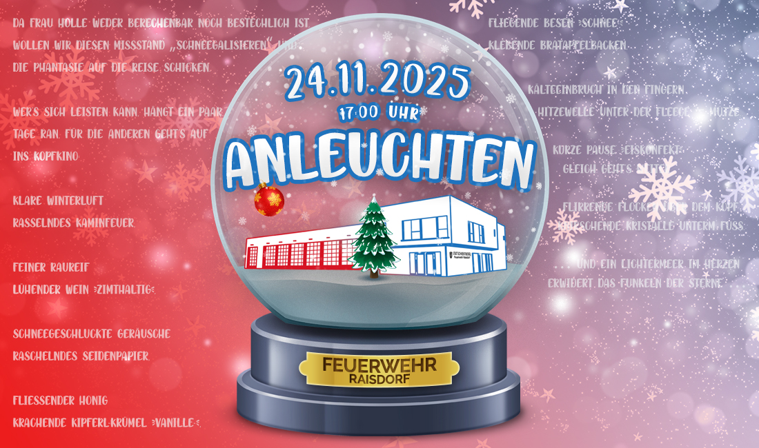 11.11.2025 (16:30) Alarmierung 120 Minuten Einsatzdauer TH K 00 Einsatzstichwort 08 Einsatzkräfte LATERNENUMZUG St.-Martins-Weg EINSATZBERICHT Im Rahmen einer Amtshilfe haben wir die Polizei Schwentinental bei der Absicherung des Laternenumzugs der Kirchengemeinde Raisdorf von der St.-Martins-Kirche bis zum APH St.-Anna unterstützt. [...]