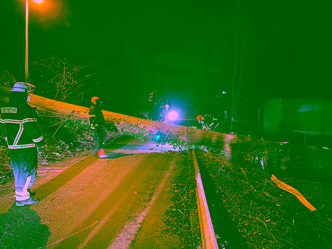 Ein Baum mit einem Durchmesser von rd. 60 cm stürzte um und blockierte den Fernsichtweg. Unter dem Einsatz mehrerer Kettensägen wurde der Baumstamm zersägt. Im Anschluss daran war der Weg wieder frei, die Straße war wieder passierbar.