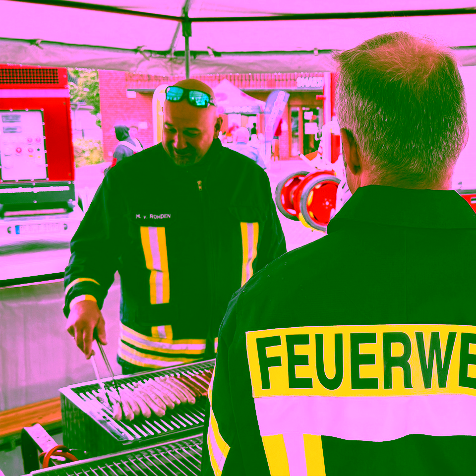 In unserem Grillstand brutzelten unter wie immer fachkundlicher Leitung unseres Kameraden Michael von Rohden wieder leckere Nackensteaks und Thüringer Schinkengriller. Und in unserer Fahrzeughalle hatte unsere neu gegründete Verwaltungsgruppe ihre „Feuertaufe“: Deren Mitglieder betreuten den ganzen Tag über den Getränkestand sowie den Kaffee- und Kuchenverkauf. Die Verwaltungsgruppe bestand die „Feuertaufe“ mit Bravour. Vielen herzlichen Dank an die neuen Mitglieder unserer Wehr für diesen starken Einsatz – weiter so!