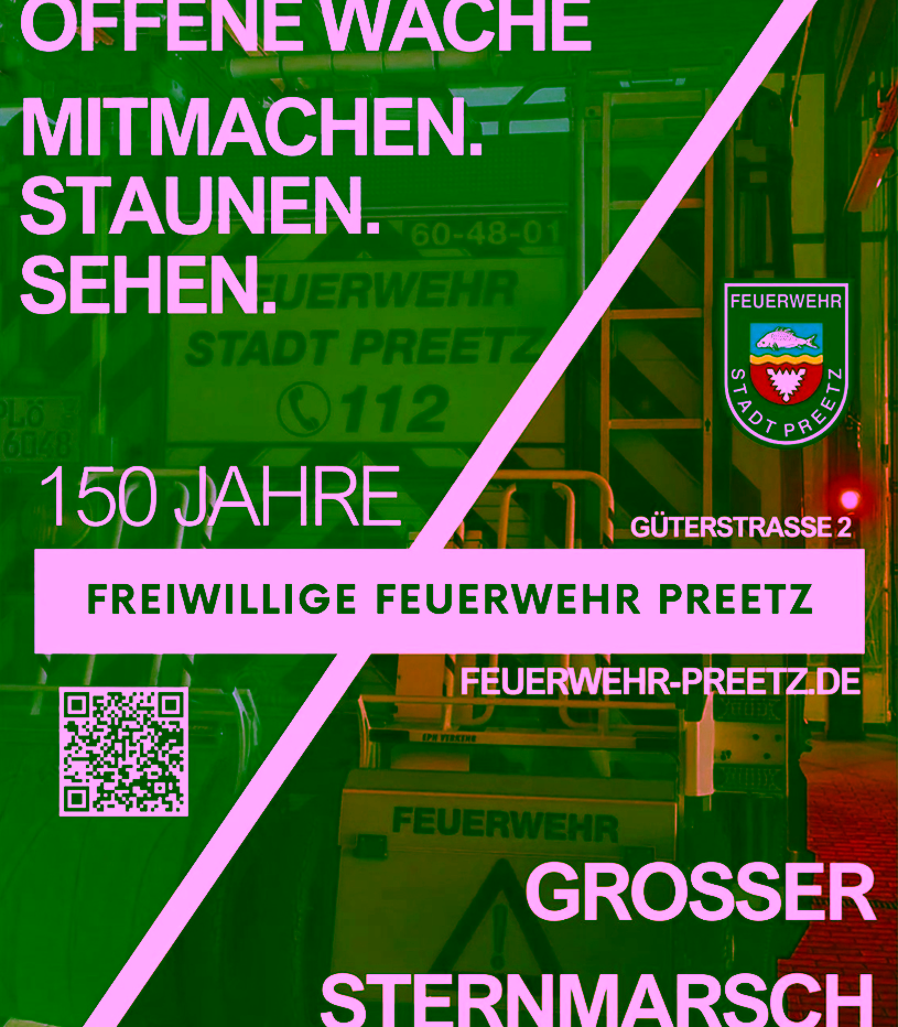 Mit einem großen Festwochenende feierten unsere Kameraden der Freiwilligen Feuerwehr Stadt Preetz im Juli das 150jährige Jubiläum ihrer Wehr. Einer der Höhepunkte der Festivitäten war der Sternmarsch durch das Stadtgebiet am Sonntag, dem 20. Juli.