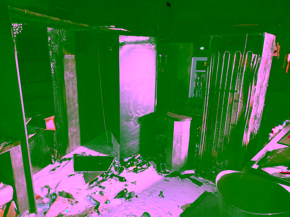 Da die Haupthalle zum Zeitpunkt unseres Eintreffens bereits komplett verraucht war, ging ein Trupp unter Atemschutz zur Brandbekämpfung vor. Mit Hilfe einer Wärmebildkamera konnte das Feuer lokalisiert werden: Im Tresenbereich der Halle waren zwei Kühlschränke in Brand geraten. … und wir begannen mit der Brandbekämpfung.