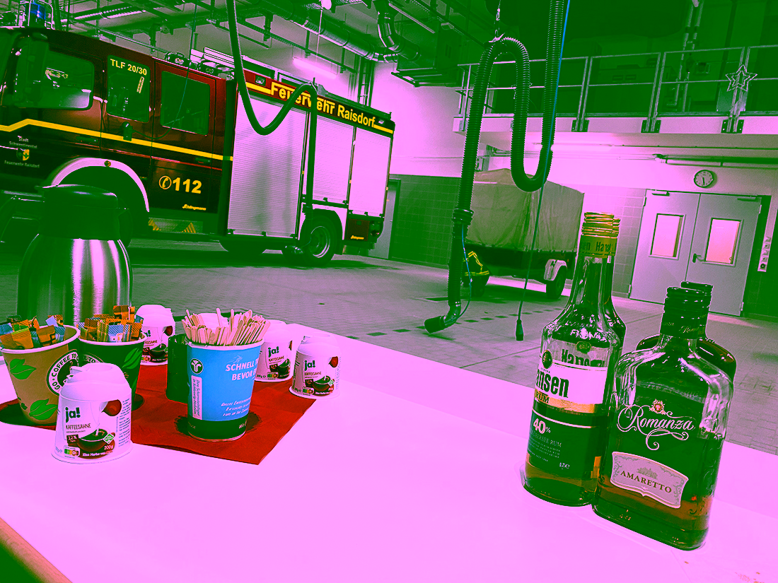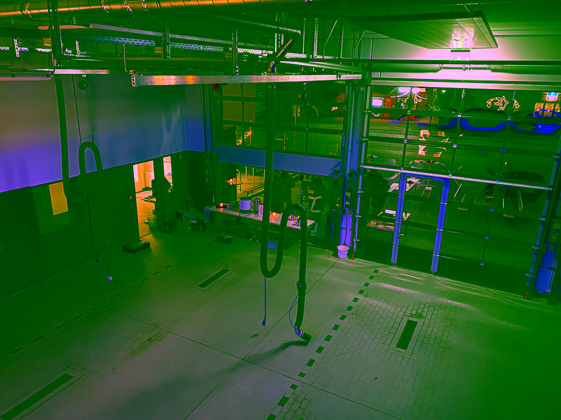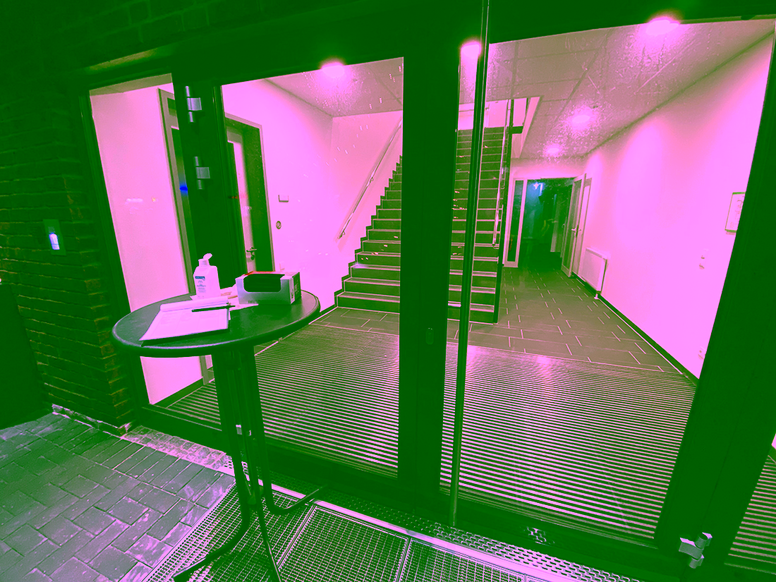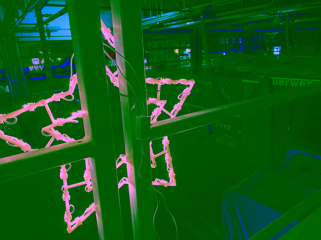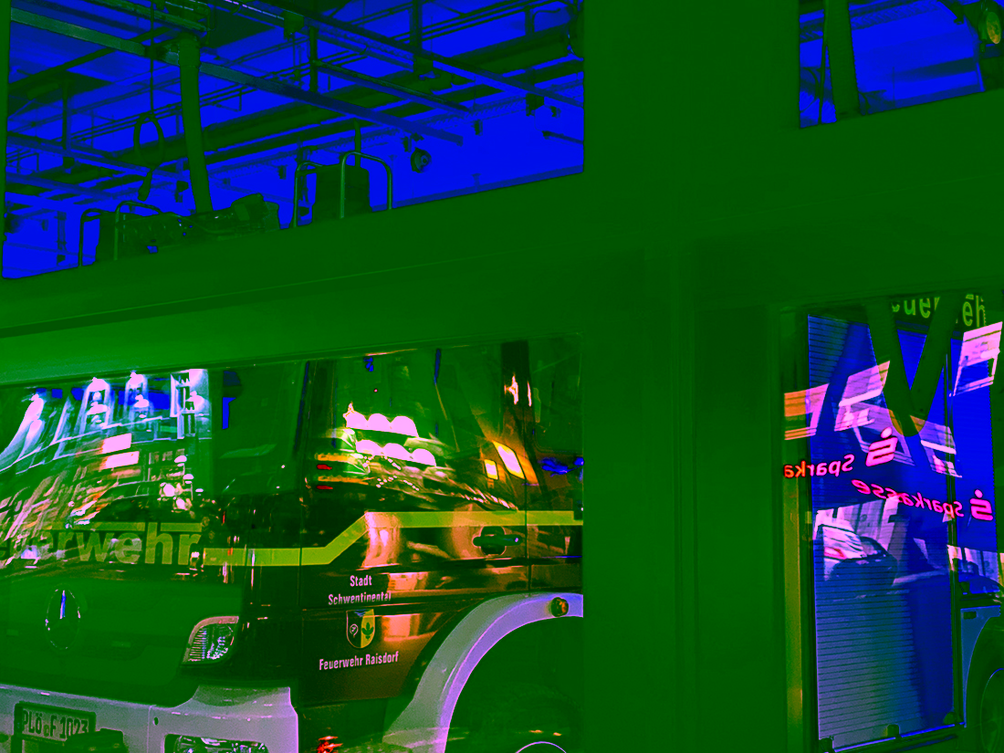 Haben Sie sich vielleicht gefragt, warum unsere Fahrzeughalle blau beleuchtet ist?: