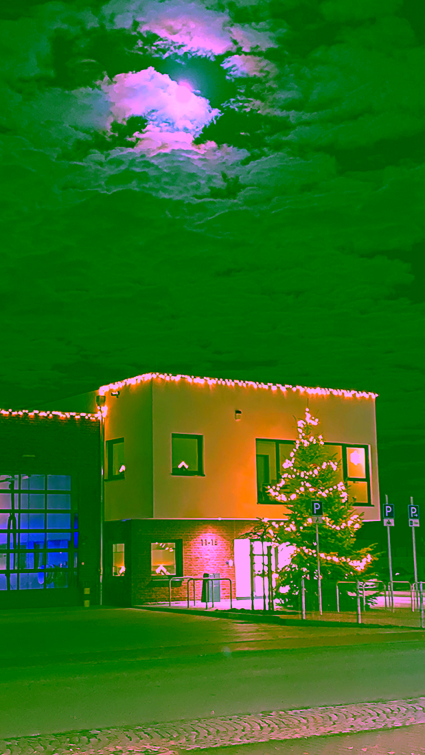 Bei klarem, kalten Wetter stahl uns zunächst der helle Vollmond am sternenklaren Himmel die Show. Doch nach einer kleinen Ansprache unseres Wehrführers Stefan Kühl und unseres Bürgermeisters Thomas Haß starten wir den Countdown. … und im Anschluss erstrahlte pünktlich um 18:30 Uhr unsere Wache im glanzvollen Licht.