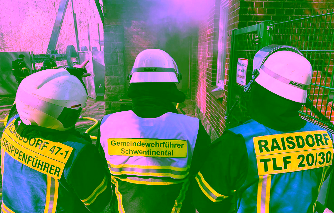 Verunfallte Personen, dargestellt durch Puppen, konnten schnell ausfindig gemacht und an den (fiktiven) Rettungsdienst übergeben werden. Die Atemschutzüberwachung klappte einwandfrei. Die neuen Headsets mit Mikrofon funktionierten ohne größere Störungen. Die beiden Gruppenführer Jan Olsson (FF Klausdorf, links im Bild), René Stiem (FF Raisdorf, rechts im Bild) und Gemeindewehrführer Martin Schlüter (Bildmitte) zeigten sich über den Verlauf der Übung dann auch sehr zufrieden.