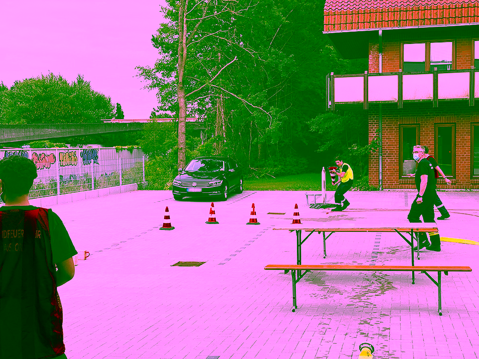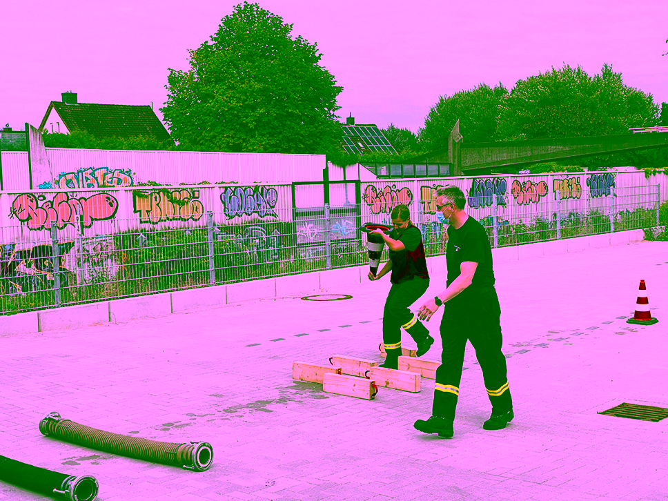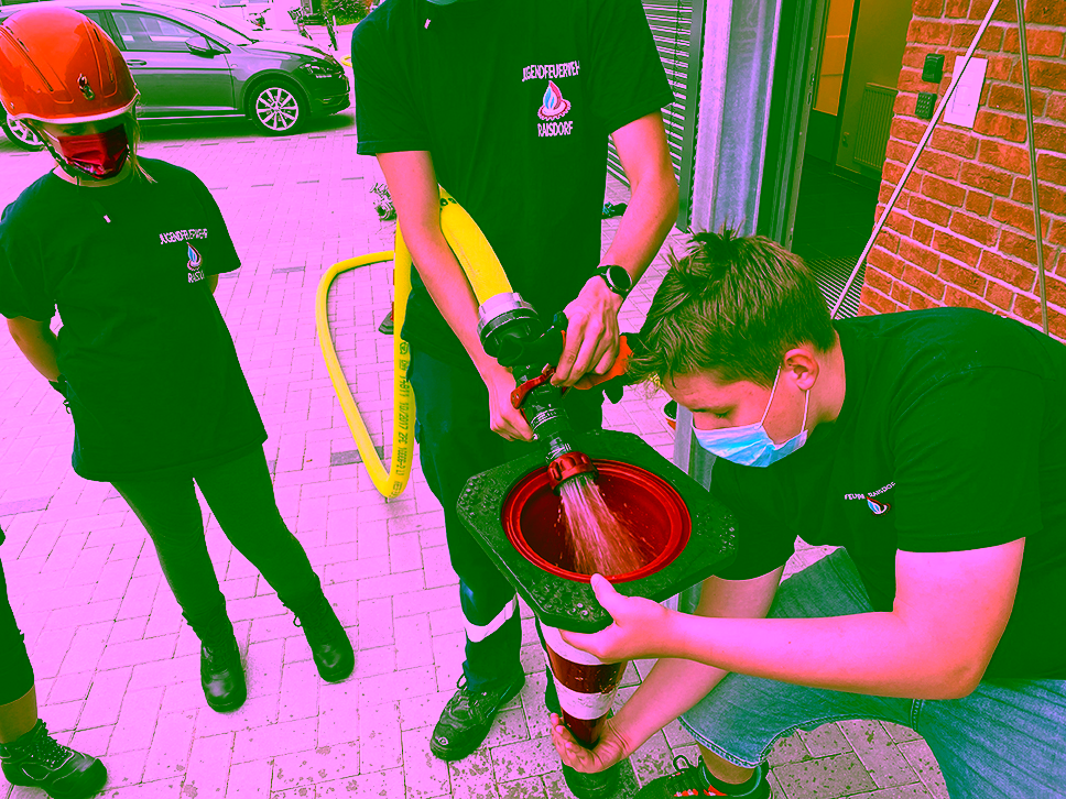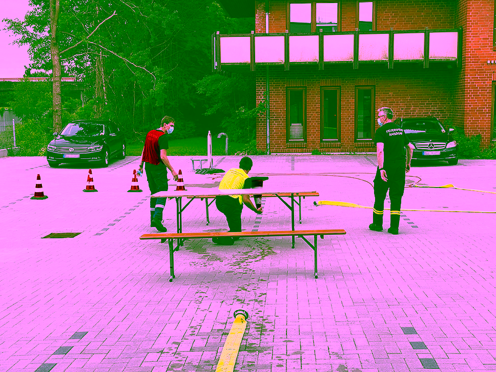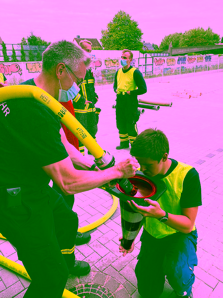 Galt es doch in möglichst kurzer Zeit einen mit Wasser gefüllten Pylonen durch einen Hindernisparcours zu bringen. Natürlich mit dem Ziel, am Ende möglichst viel Wasser abliefern zu können.
