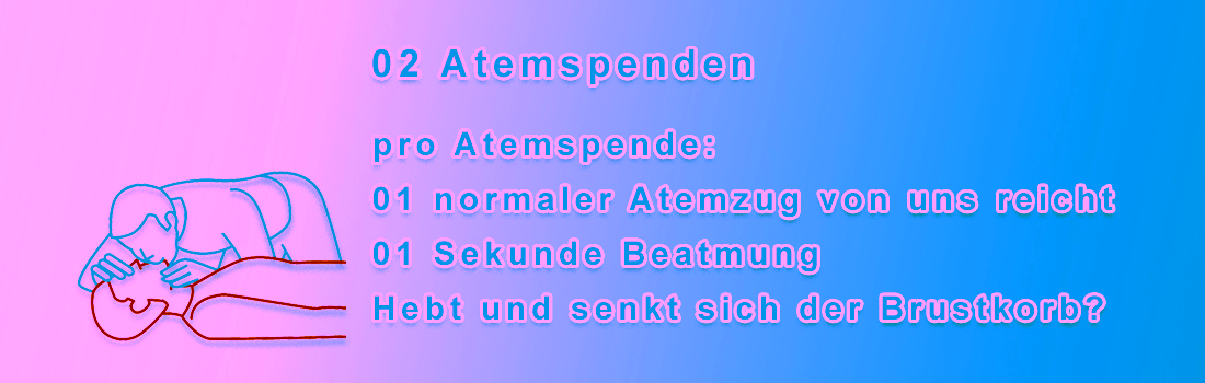 Sofern sich bereits bei der 1. Atemspende ein Heben und Senken des Brustkorbes bemerkbar gemacht hat, achten Sie bitte immer darauf, dass die Lage des Kopfes der betroffen Person nicht verändert wird. Die Luftwege sollen frei bleiben!
