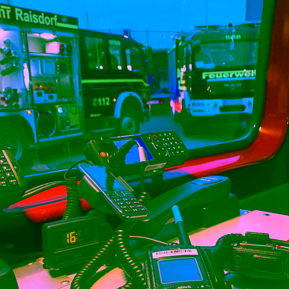 Angefangen vom Trupp, über die Maschinisten und Truppführer bis hin zur Einsatzleitung: Unsere Kommunikation erfolgt per Funk. Im Einsatzleitwagen laufen alle gesammelten Informationen zusammen. Auch befindet sich hier das Bindeglied zwischen der Leitstelle Mitte und uns vor Ort.
