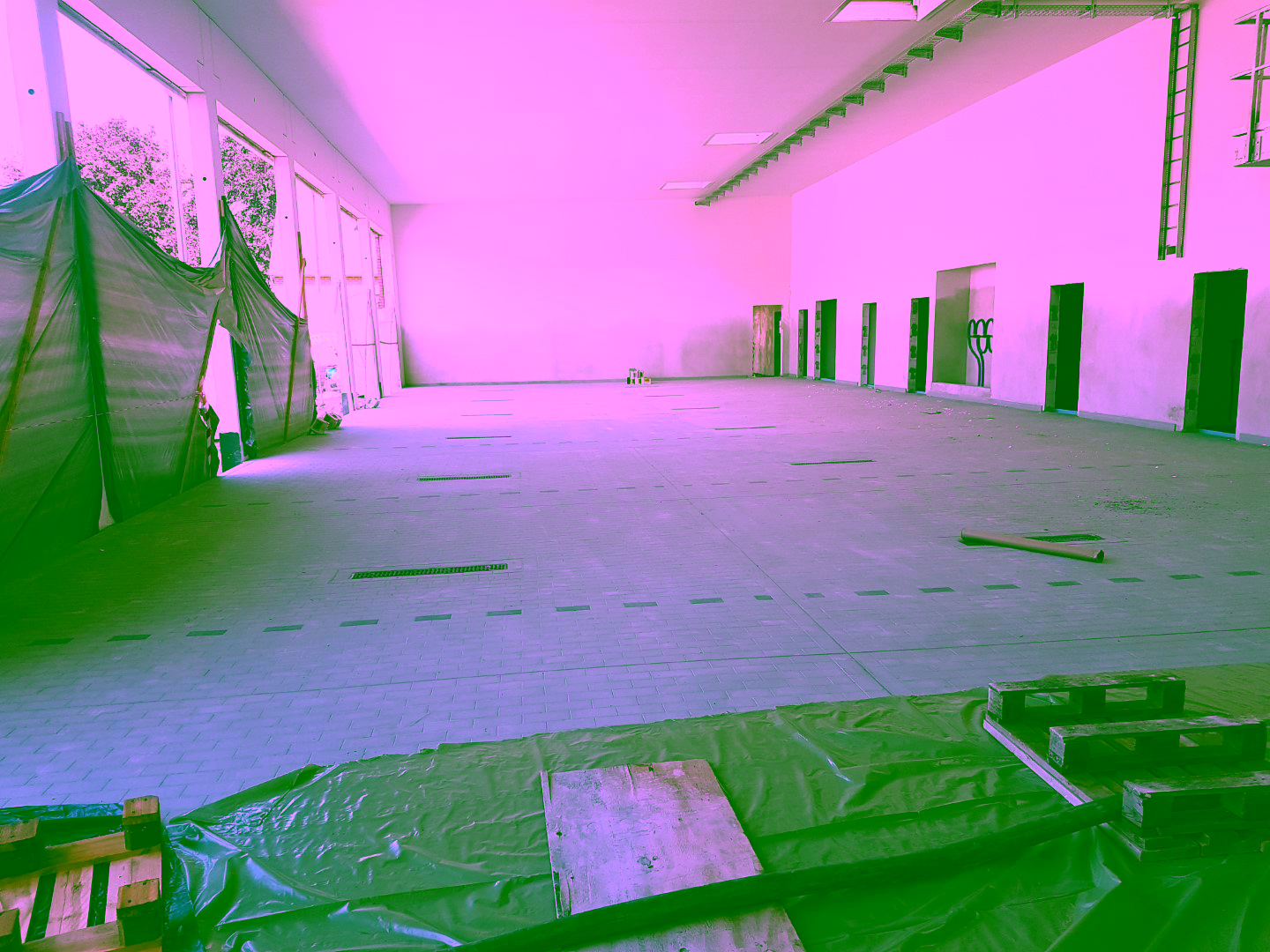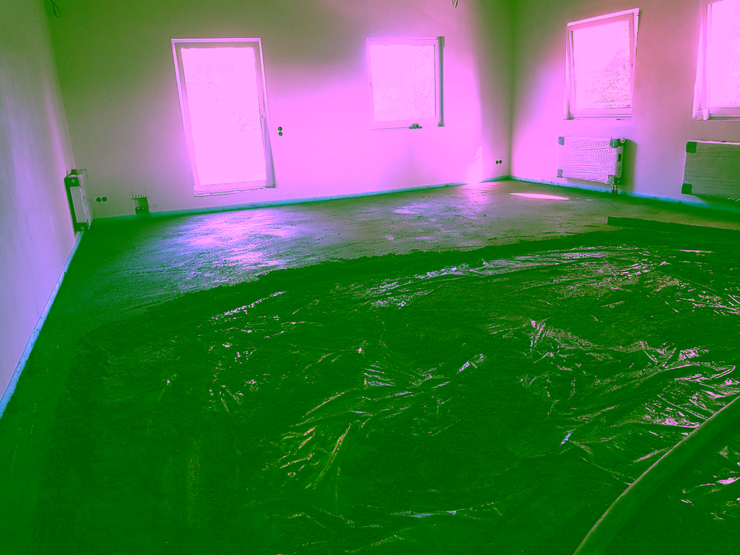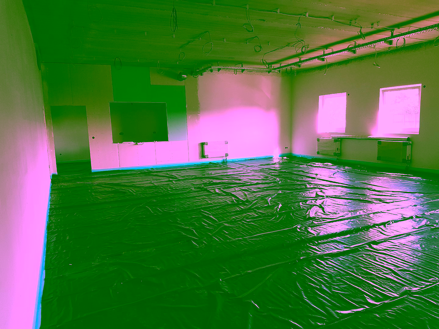 Zuerst wurde die Dämmung verlegt und mit einer Sperrfolie abgedichtet. Dann kommt der Estrichbeton in die Räume. Begonnen wurde heute ganz hinten im Obergeschoß (Jugendfeuerwehraum).