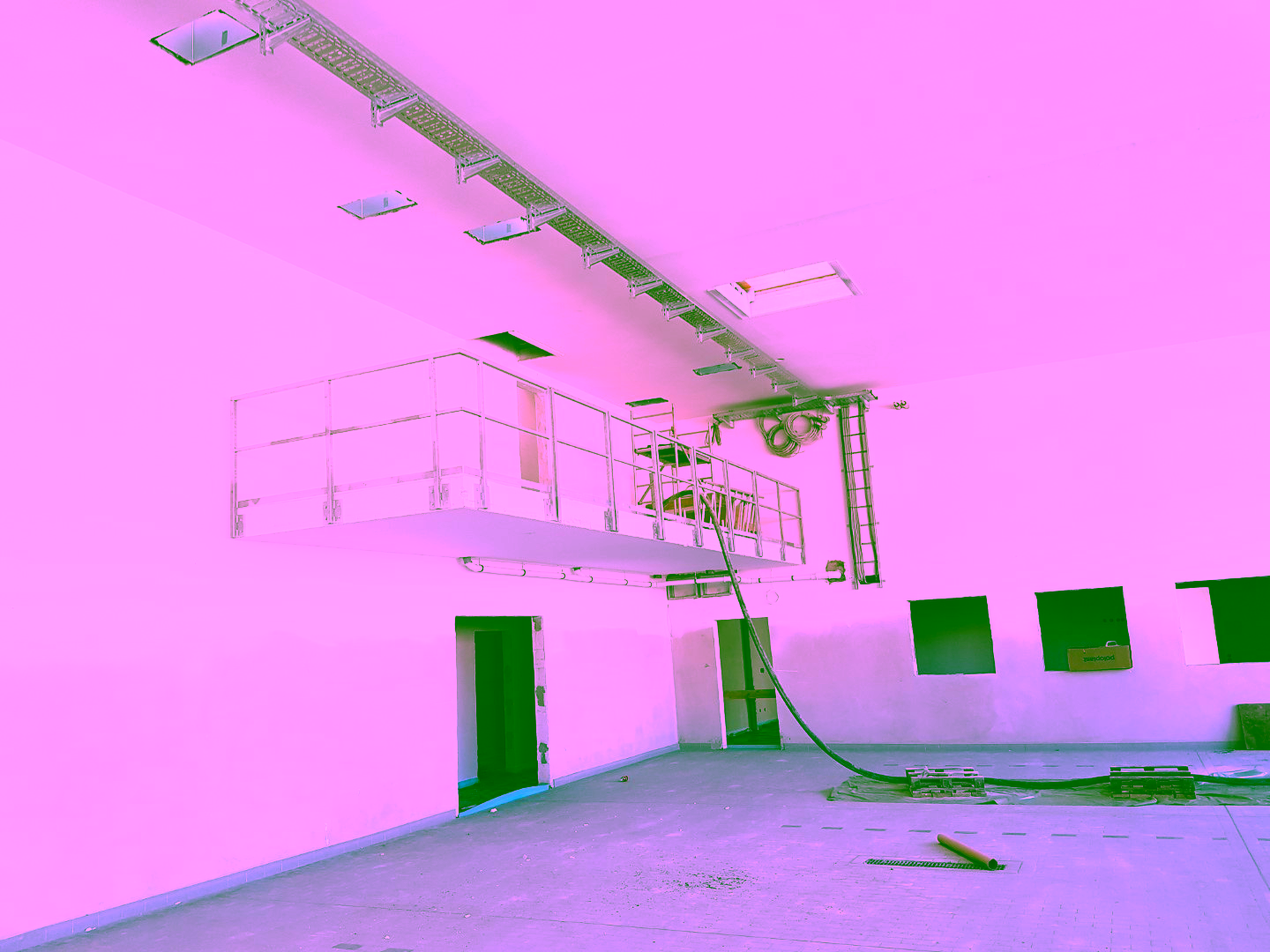 es sind alle Rohre und Kabel sowie die Fußbodenheizung in den Sanitärbereichen verlegt. Nun kann es also mit dem nöchsten Schritt weitergehen: Der Estrichbeton wird eingebaut.