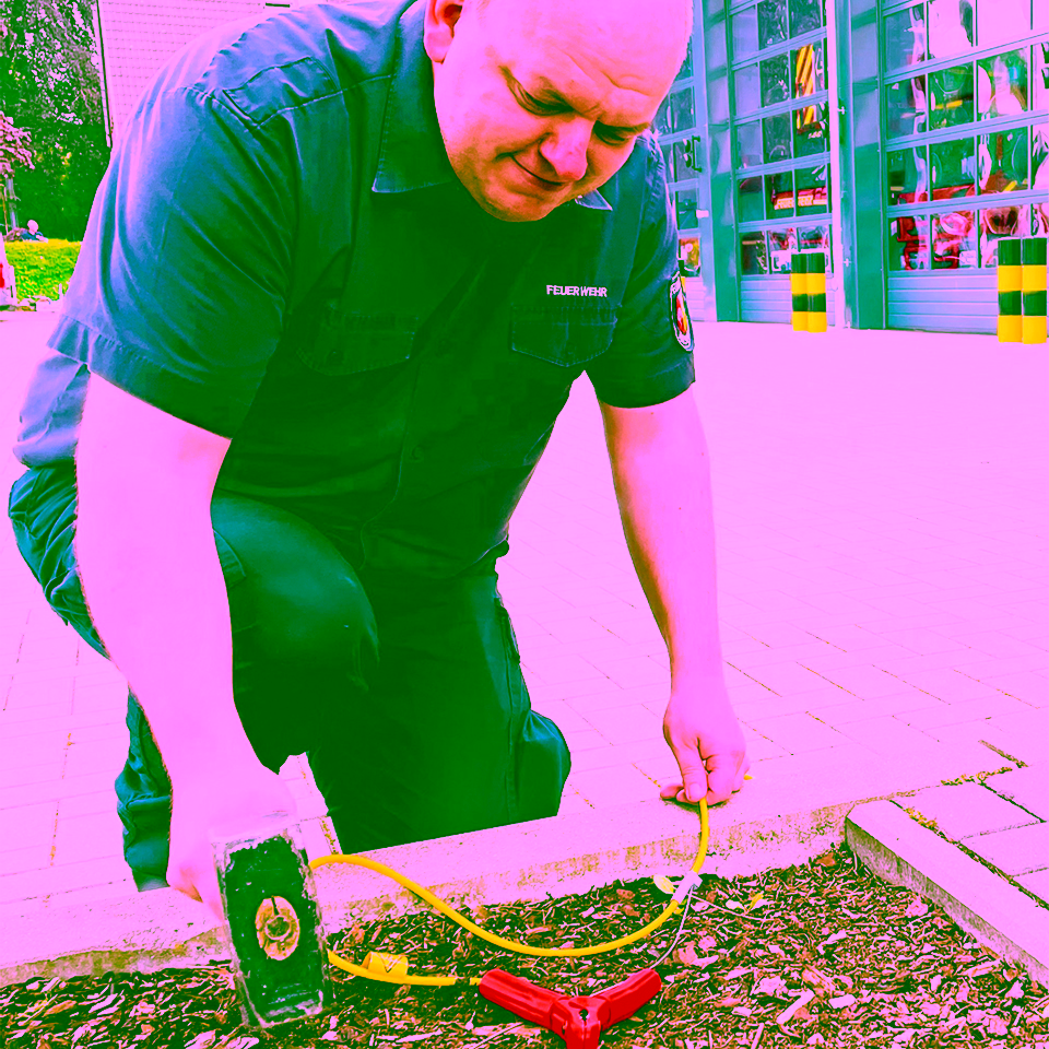 Er hat sich wieder etwas Sinnvolles ausgedacht, unser hauptamtlicher Gerätewart Thomas „Stachi“ Stach: Die „Übungsanlage Keller unter Wasser“. Weil Sicherheit für uns Feuerwehrleute oberste Priorität hat. Und weil dies insbesondere überall dort gilt, wo wir mit Elektrizität zu rechnen haben. Das kann etwa bei einem Verkehrsunfall, bei dem ein Kraftfahrzeug gegen eine Laterne oder einen Sicherungskasten gefahren ist, der Fall sein. Primär ist dies für uns als Feuerwehr jedoch bei überfluteten Kellern von Belang, weil das Wasser in diesen Kellern unter elektrischer Spannung stehen könnte. Dort ist dann unsere Eigensicherung von entscheidender Bedeutung.