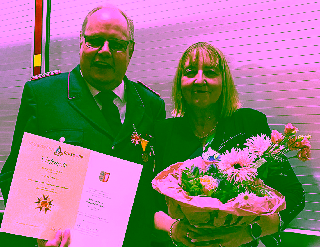 Für 50 Jahre Feuerwehrdienst ist Wilfried Pöhlmann das Brandschutz-Ehrenzeichen des Landes Schleswig-Holstein in Gold am Bande verliehen worden. Der Löschmeister, der Verfasser einer umfangreichen Chronik der FF Raisdorf ist, wurde zudem mit dem Verdienstorden der Freiwilligen Feuerwehr Raisdorf ausgezeichnet und zugleich für 50 Mitgliedschaft in dieser Wehr geehrt.