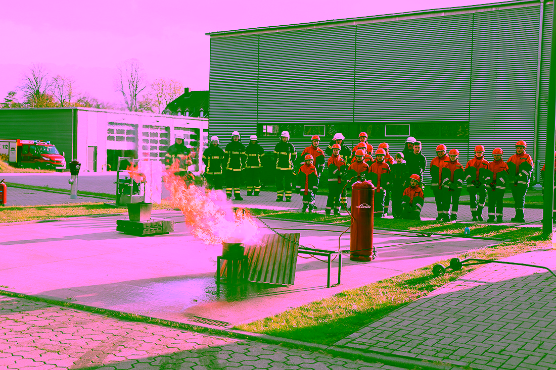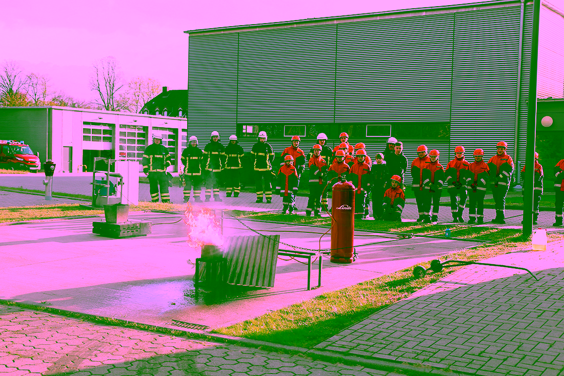 Die Jugendlichen löschten dann unter fachmännischer Aufsicht unseres Jugendbetreuers Jörg Schütt mittels eines Feuerlöschers das Feuer.