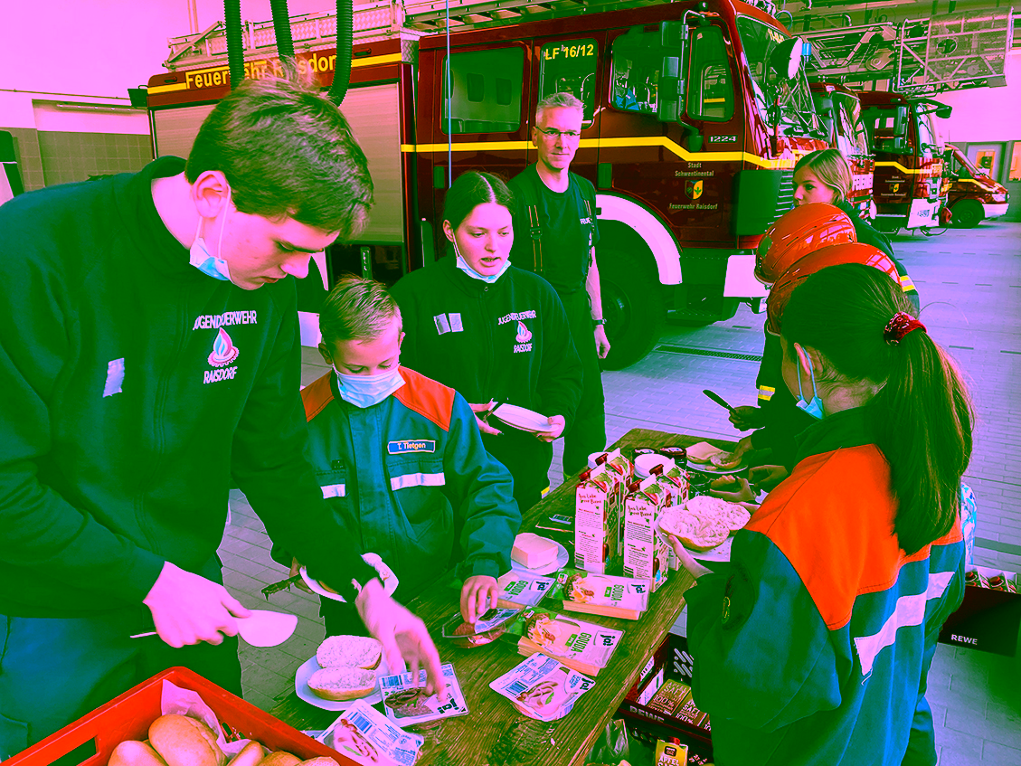 Und es gab einen Einsatz aufgrund eines in einem Privathaus in der Reuterkoppel piependen privaten Rauchmelders. Nach dem gemeinsamen Mittagessen im Feuerwehrhaus (es gab Grillwurst mit Pommes) wollten die Jugendlichen dann wieder voll wieder durchstarten – doch es kam zunächst anders: