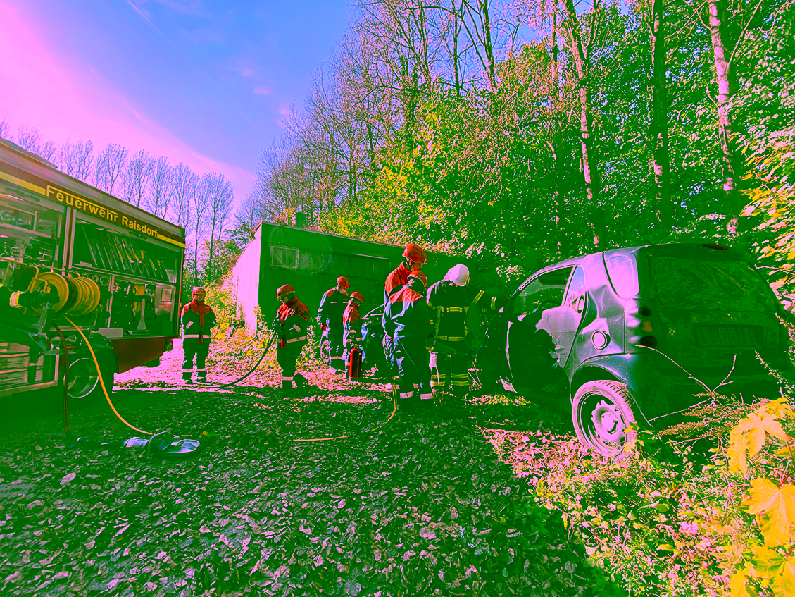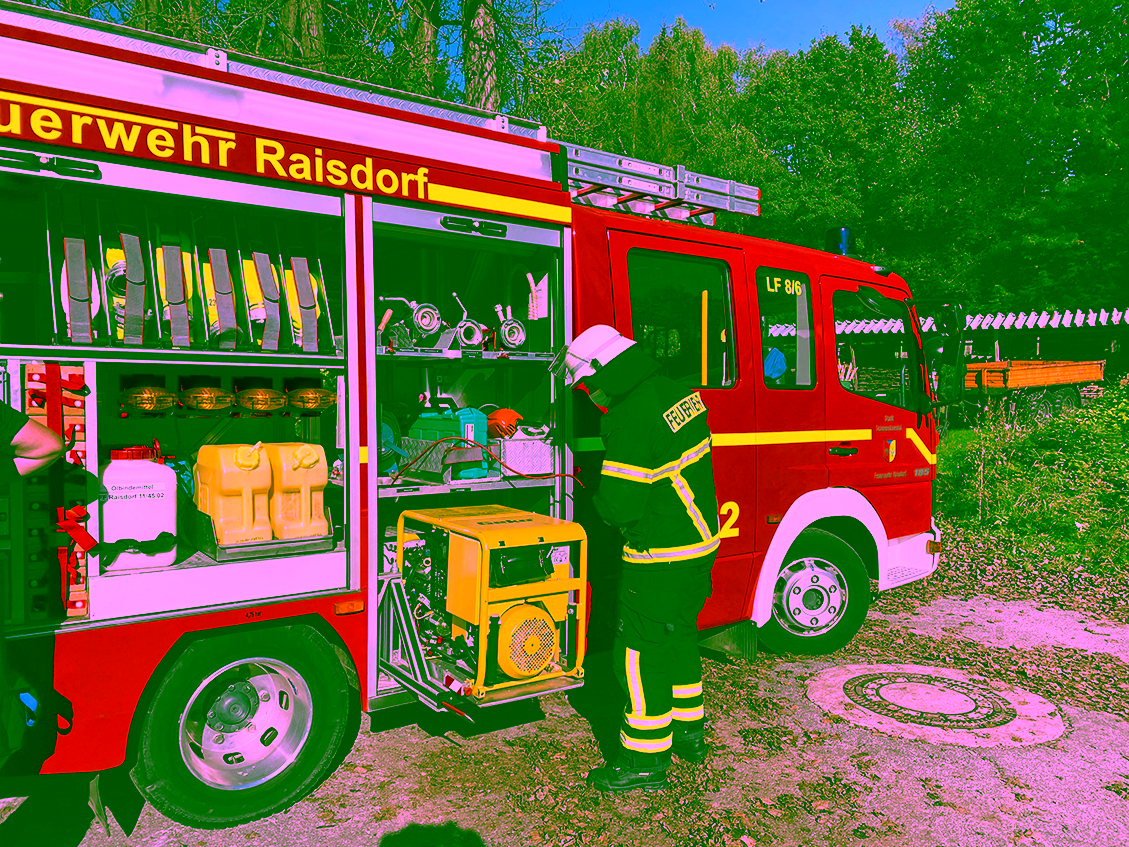 Die Feuerwehr Raisdorf wurde zu einem echten Einsatz in die Kolberger Straße gerufen; dort war aus ungeklärter Ursache eine an der Außenwand eines Gebäudes befestigte Holzverkleidung in Brand geraten. Dieser Kleinbrand konnte jedoch schnell gelöscht und der Jugendfeuerwehrtag nach einer kurzen Unterbrechung fortgesetzt werden.