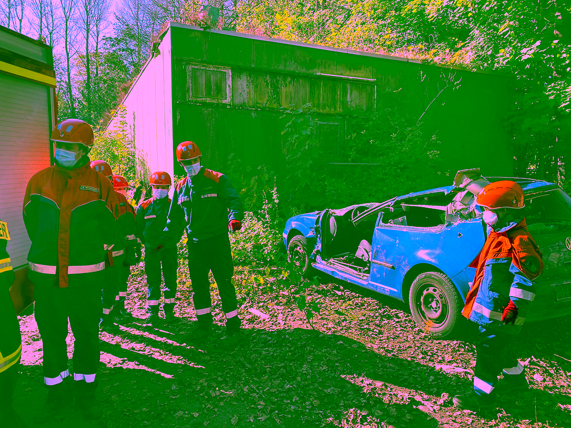 Niemand der 24 Jugendlichen abgesagt – sehr zur Freude von Jugendfeuerwehrwart Markus Nitschmann und den Jugendbetreuern, welche sich für die Jugendlichen wieder viele Einsatzszenarien ausgedacht hatten. Dazu wurden drei Gruppen gebildet, welche jeweils zeitlich versetzt zu den unterschiedlichen Einsatzorten alarmiert wurden, um dort ihr Können unter Beweis zu stellen. So wurde im Wildpark Schwentinental an einem verunfallten PKW die Personenrettung geübt.