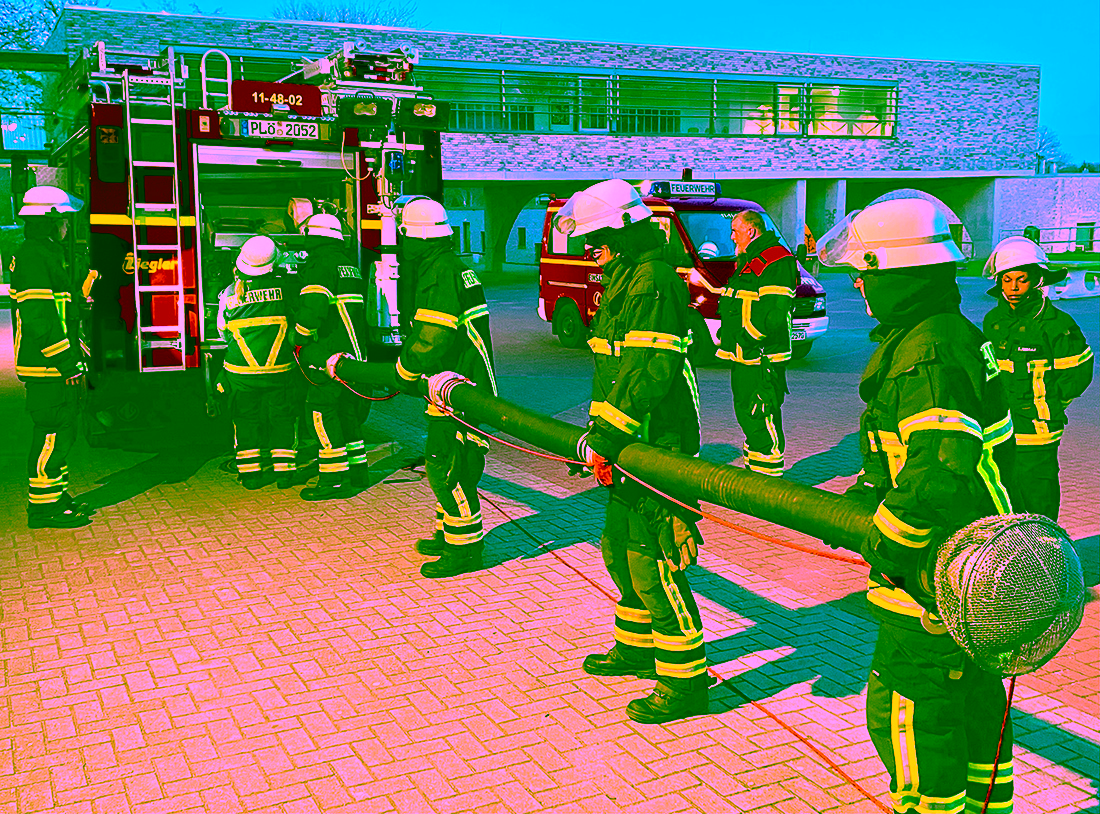 Außerdem wurde der Notbetrieb der Drehleiter besprochen. Eine andere Gruppe unserer Wehr machte an jenem Abend „Dienst nach Feuerwehr-Dienstvorschrift (FwDV) 3“. Diese Vorschrift regelt, wie die taktischen Einheiten Selbstständiger Trupp, Staffel, Gruppe und Zug im Lösch- und Hilfeleistungseinsatz arbeiten.