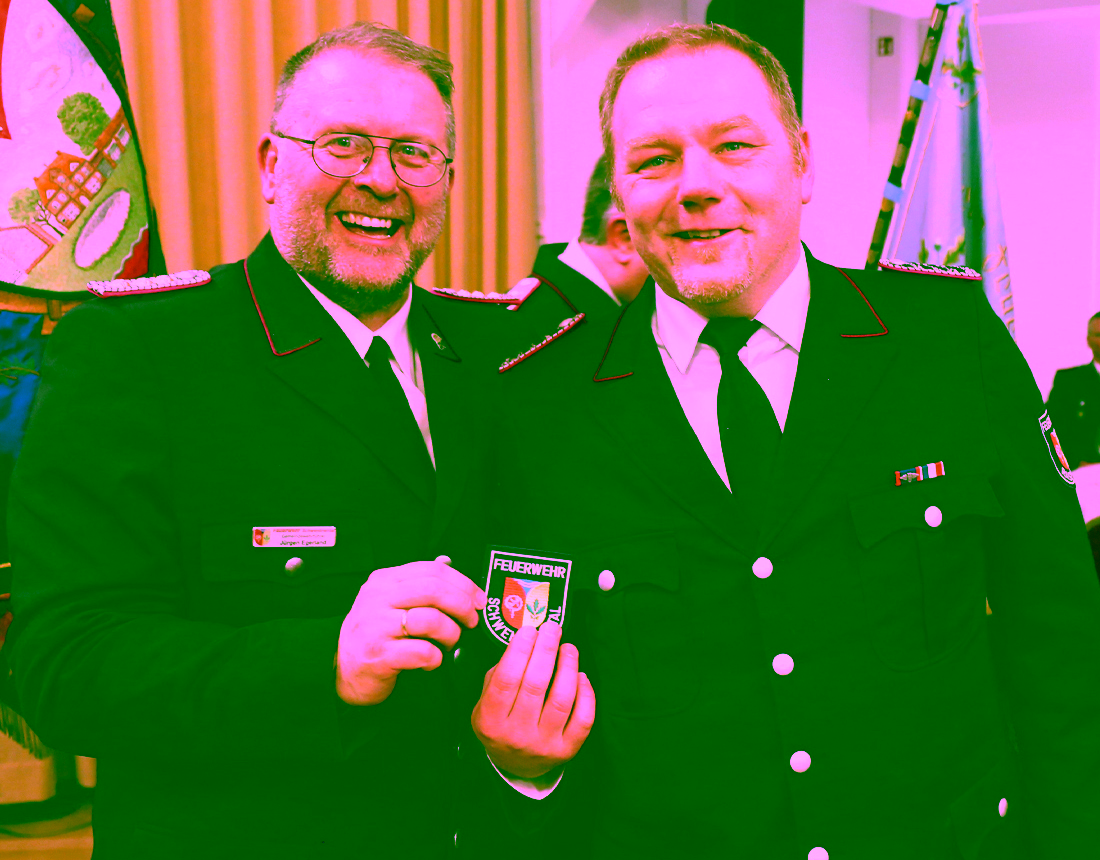 Nach der Wahl gratulierte Jürgen Egerland (auf dem Foto links) dem neu gewählten Gemeindewehrführer herzlich zu dessen Wahl und überreichte ihm das Abzeichen „Feuerwehr Schwentinental“ mit dem Wappen unserer Stadt für dessen Uniform. Der 45jährige dankte seinem Vorgänger für dessen Verdienste für die Freiwillige Feuerwehr Schwentinental während seiner zwölfjährigen Amtszeit.