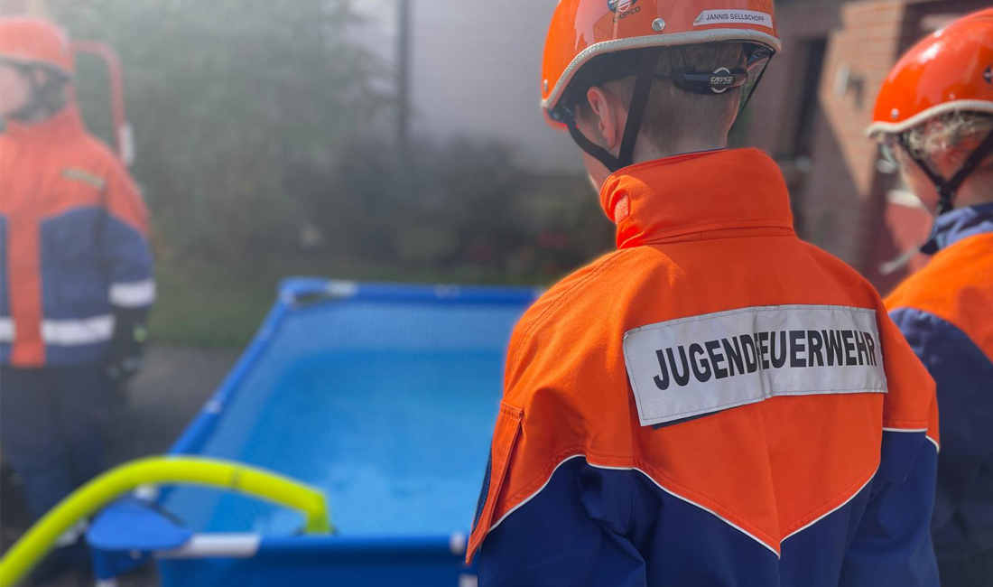 Ruhe wurde den Jugendlichen der für dieses Wochenende ausgerufenen „Berufs-Jugendfeuerwehr Raisdorf“ jedoch nicht gegönnt! Nach dem Mittagessen ging es ohne Verschnaufpause weiter mit Alarmierungen und Einsätzen: Personensuche am Klinkenberg, Löschen einer brennenden Mülltonne an der Blindowschule sowie Abpumpen eines vollgelaufenen Kellers, symbolisiert durch einen Pool, in der Königsberger Straße.