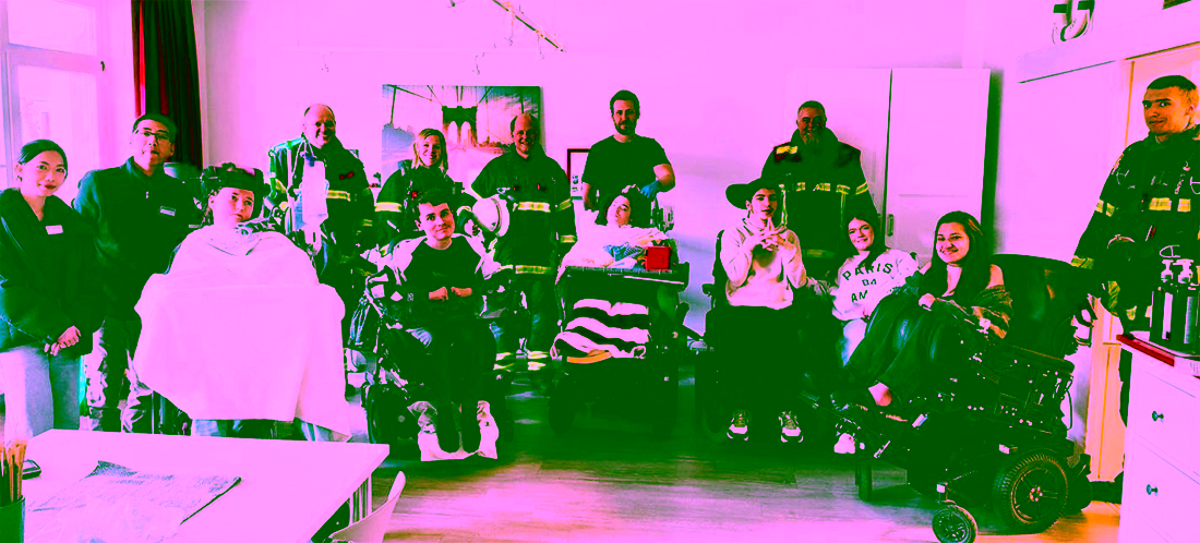 Die Übung sieht vor, dass der gesamte Dachstuhl brennt. Die besondere Herausforderung liegt hierbei darin, die rund 30 teils körperbehinderten Menschen der Wohngruppe „Fehmarn“ (Foto) aus dem Gebäude zu evakuieren. Ja, es sind keine Puppen oder Statisten, die gerettet werden sollen – es sind die wirklichen Bewohner, die von uns aus drei Stockwerken hinunter auf die Straße gebracht werden müssen. Es war der Wunsch des Deutschen Roten Kreuzes, einen solchen Brand und die Räumung des Gebäudes einmal mit der Wohngruppe zu üben.
