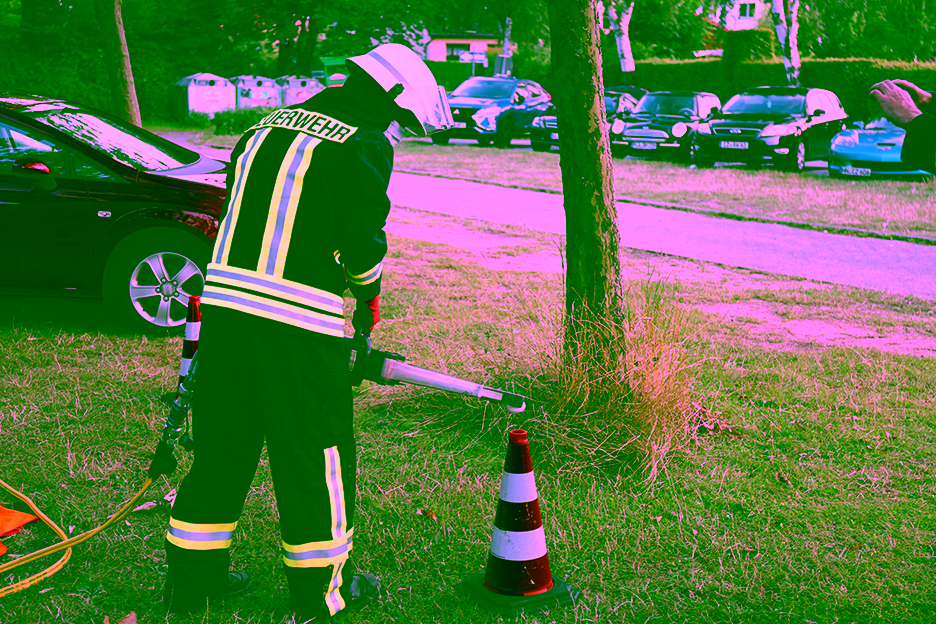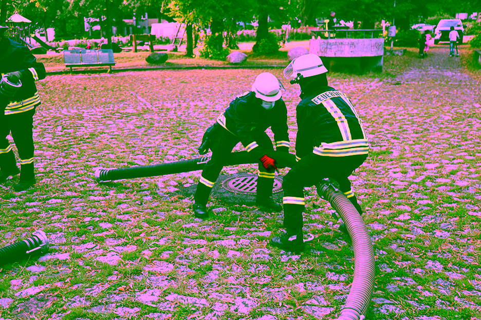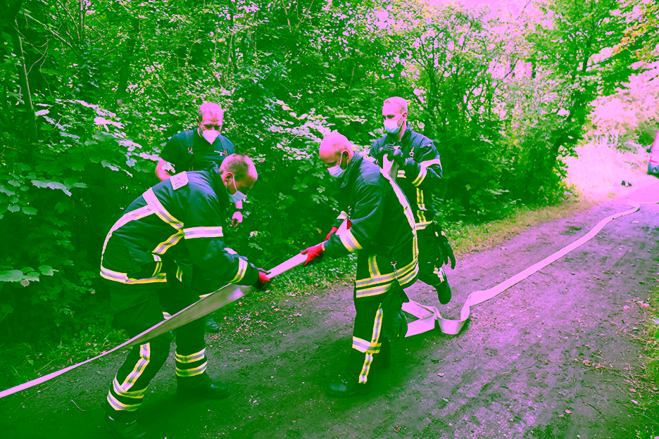 Dies bedeutete eine entsetzliche Rödelei für alle Kameradinnen und Kameraden! Folgende Stationen galt es für die verschiedenen Kleingruppen, in welche wir aufgeteilt wurden, zu bewältigen: Wasserspiele am Feuerwehrhaus, Zusammenkuppeln von Saugschläuchen auf dem Dorfplatz, Feuerwehrknoten fertigen an der DRK-Kita, rohe Eier mit einer Hydraulikschere von Leitkegel zu Leitkegel umsetzen am Freibad, einen Golfball durch einen B-Schlauch pressen an der Weißen Brücke sowie Standrohr, Strahlrohre und Stützkrümmer aneinander kuppeln an der Bernd-Blindow-Schule.