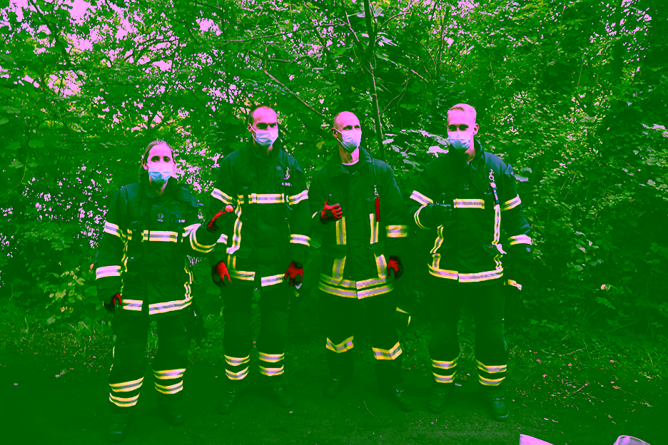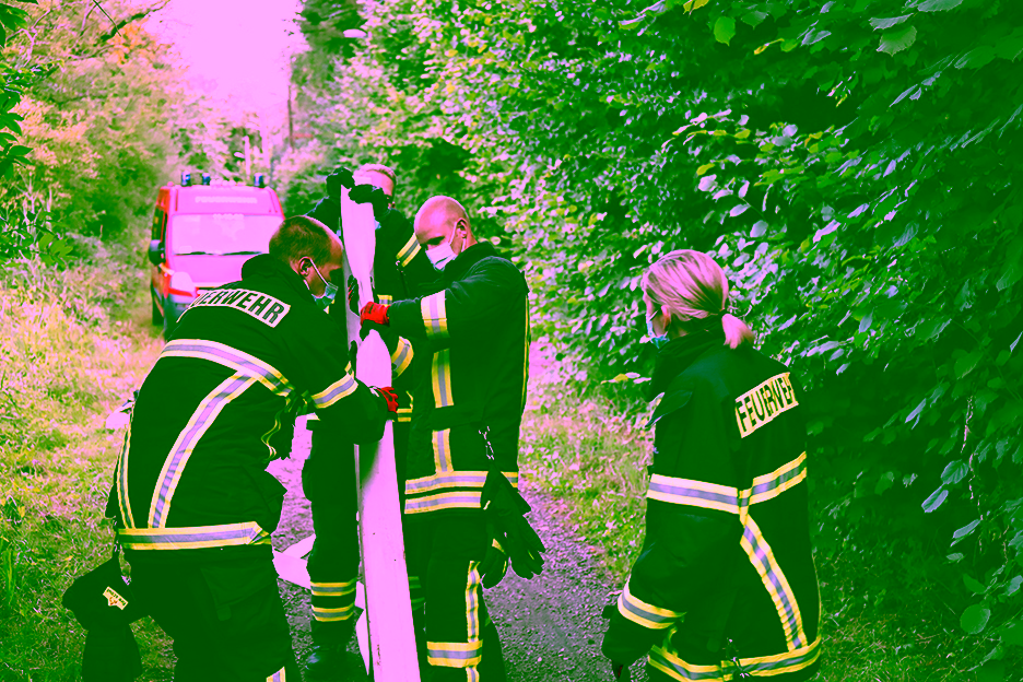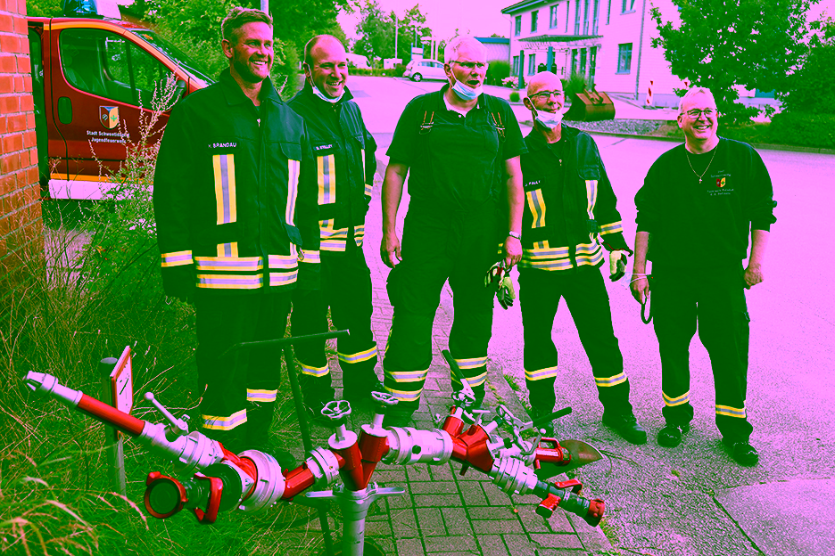 Bei letzterer Tätigkeit siegte souverän das Team der Kameraden Maik Brandau, Birger Stolley, Torsten Pries und Jürgen Pauly, welche auch Gesamtsieger des Wettbewerbs wurden – auf dem Foto von links nach rechts mit ihrer wohl einmaligen Konstruktion, die durchaus das Zeug hätte, auf der NordArt in Büdelsdorf ausgestellt zu werden! Rechts im Bild Gruppenführer Kai-Uwe Hartmann, der diese Station betreute. Fazit aller Kameradinnen und Kameraden: Ein toller Wiedereinstieg in den gemeinsamen Dienst; diese Olympischen Feuerwehr-Spiele können gerne wiederholt werden!