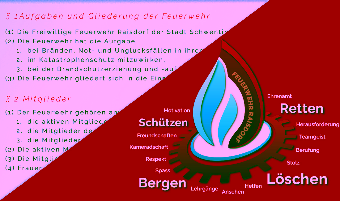 Aufgrund des § 8 Abs. 4 des Gesetzes über den Brandschutz und die Hilfeleistungen der Feuerwehren (Brandschutzgesetz – BrSchG) wird nach Beschluss der Mitgliederversammlung vom 16.02.2024 folgende Satzung für die Freiwillige Feuerwehr Raisdorf der Stadt Schwentinental erlassen.