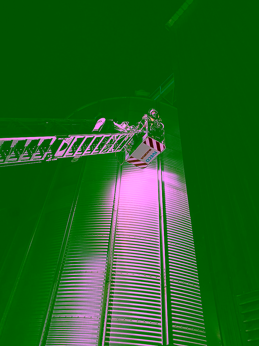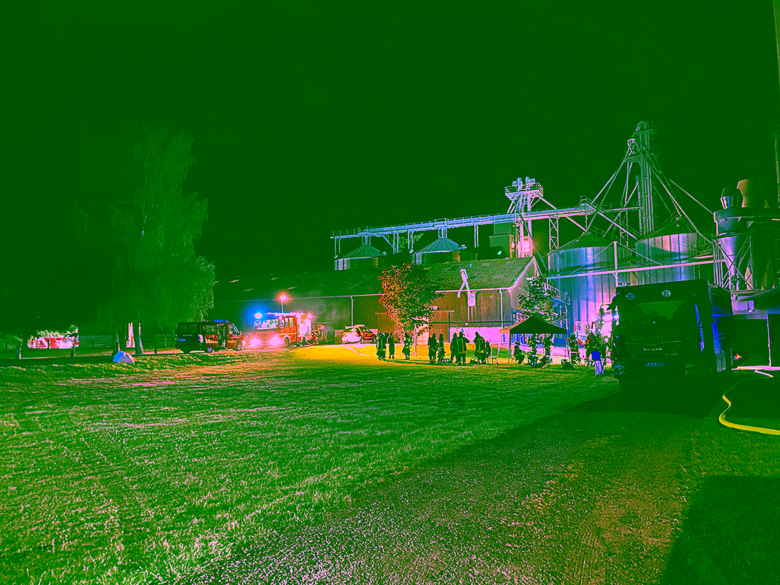Was war passiert? In einer Getreidetrocknungsanlage in der Gemeinde Martensrade (Amt Selent/Schlesen) war es zu einem Schwelbrand gekommen. Im oberen Bereich eines Trocknungsturmes trat Qualm aus. Der Einsatz gestaltete sich sehr kompliziert, weil die rund 50 Tonnen Getreide nicht im Turm gelöscht werden konnten. Problem Nr. 1: Durch ein Aufquellen der Gerste hätte der Turm bersten können. Problem Nr. 2: Wenn man die Gerste zu schnell abgelassen hätte, wäre es unter Umständen zu einer Staubexplosion gekommen. Lösung: Das Getreide wurde langsam und kontrolliert durch ein Ablassrohr aus dem rund 15 Meter hohen Trocknungsturm herausgeholt, von einem Radlader auf einer Betonplatte verteilt und abgelöscht.