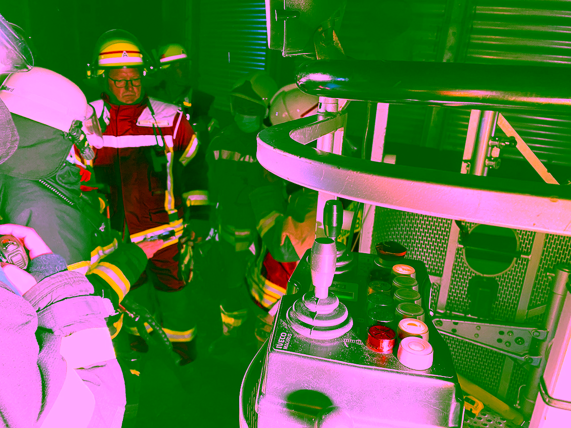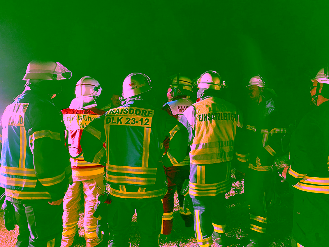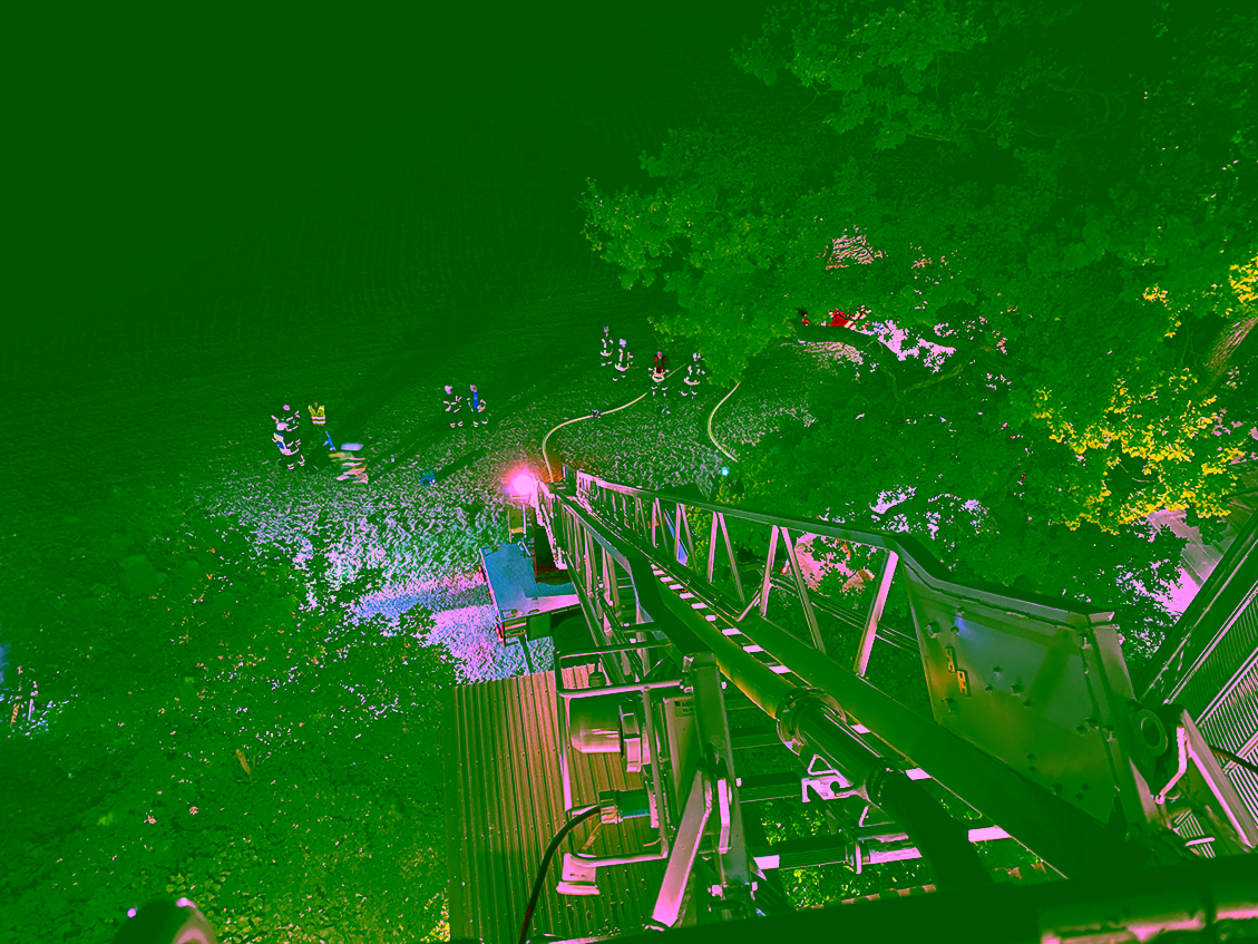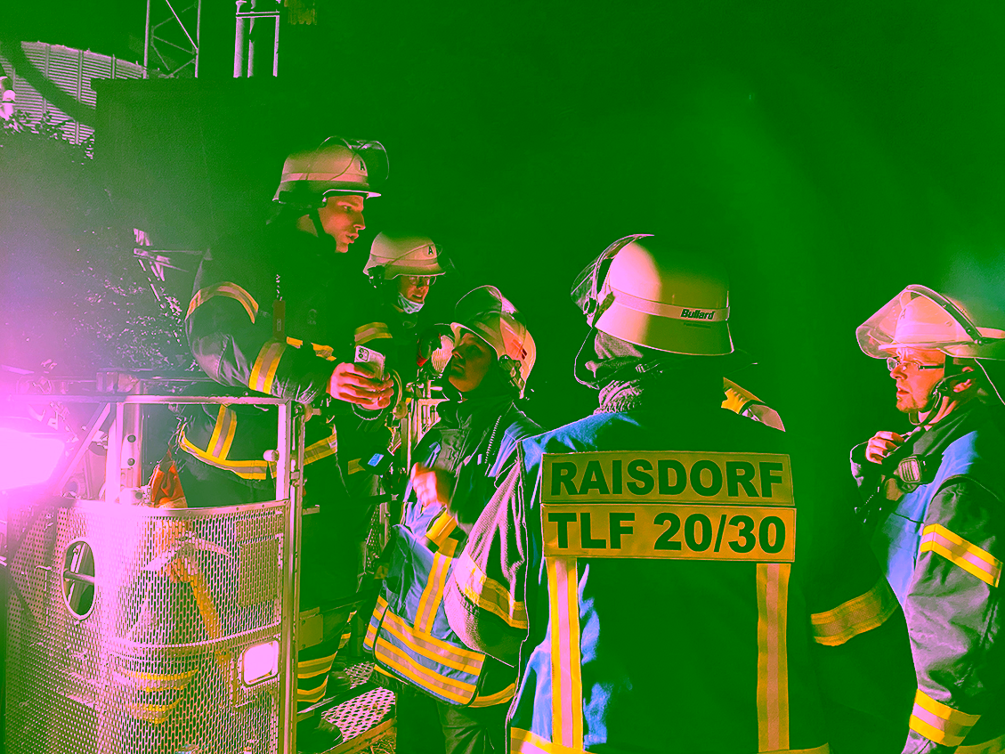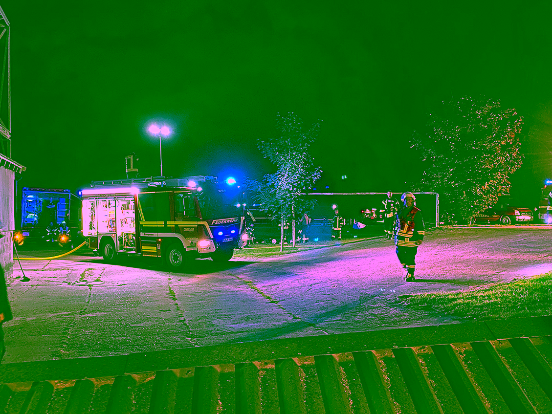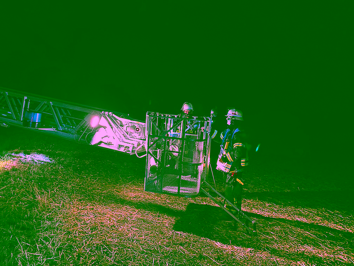 Unter der bewährten Führung von Oberlöschmeister Timo Baldowsky trafen sich bereits im Juli die Drehleiter-Maschinisten wieder zu ihrem ersten gemeinsamen Drehleiter-Dienst. Nur wenige Tage nach diesem Dienst, am Freitag, 30. Juli 2021, wurde es dann ernst: Unsere Drehleiter (DLK) wurde um 22:15 Uhr von der Leitstelle zu einem Einsatz angefordert, der die ganze Nacht andauern sollte. DLK und Tanklöschfahrzeug (TLF) rückten zu diesem Einsatz gemeinsam aus, wie es unsere Ausrücke-Ordnung vorsieht.