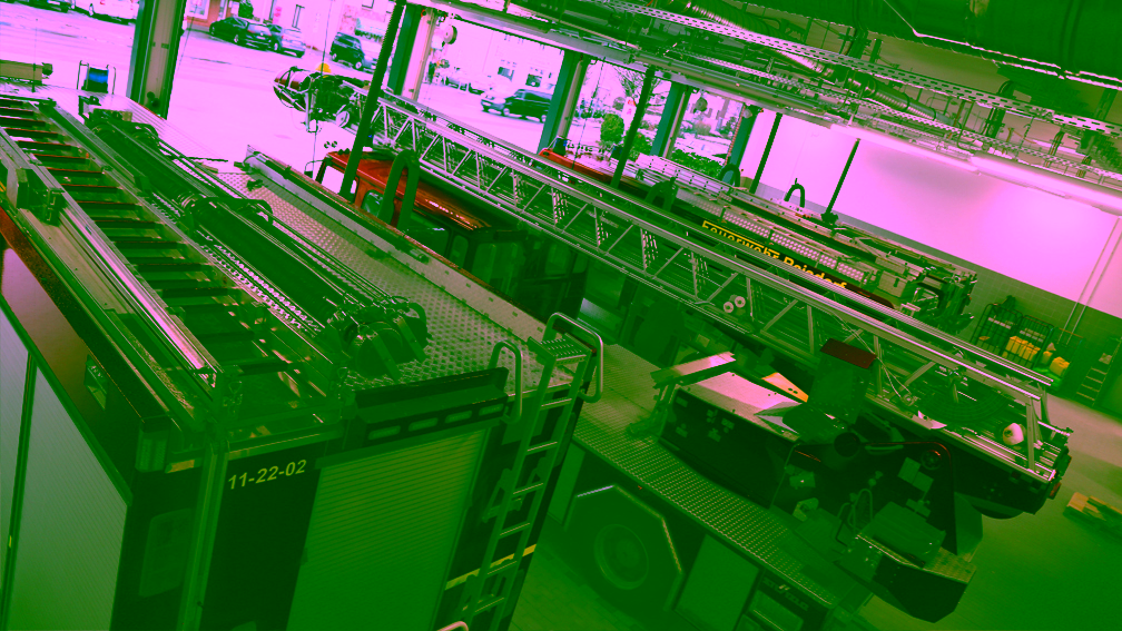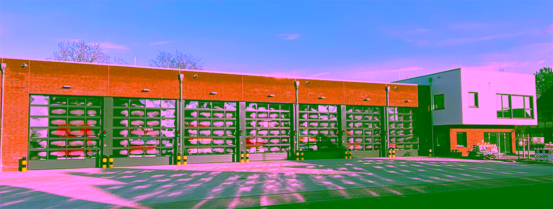 Unsere Wache verfügt über sieben Hallen – Stellplätze, in und auf denen unsere Fahrzeuge ihren Platz haben. Zusätzlich ist unserer Wache eine Waschhalle angegliedert, in der die Fahrzeuge gewaschen und gesäubert werden können.