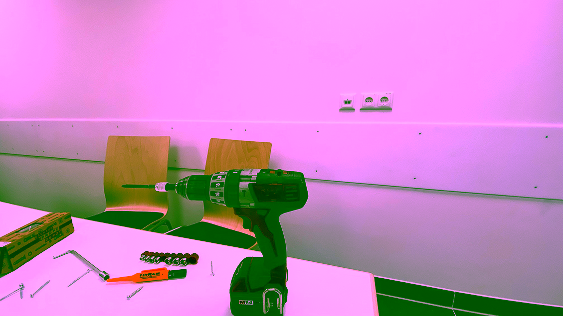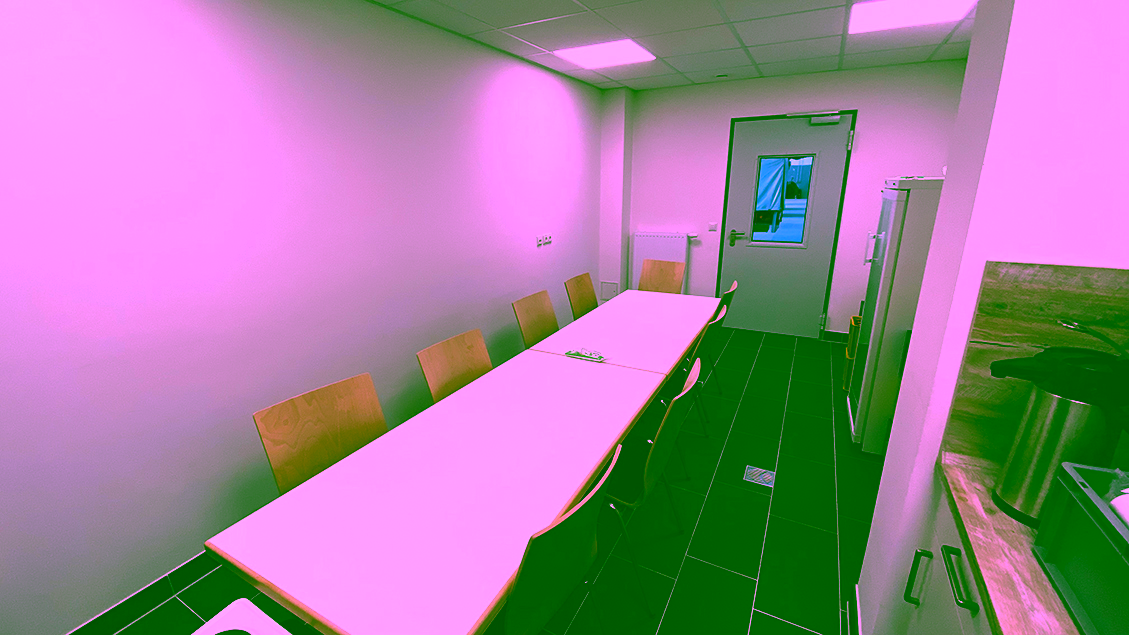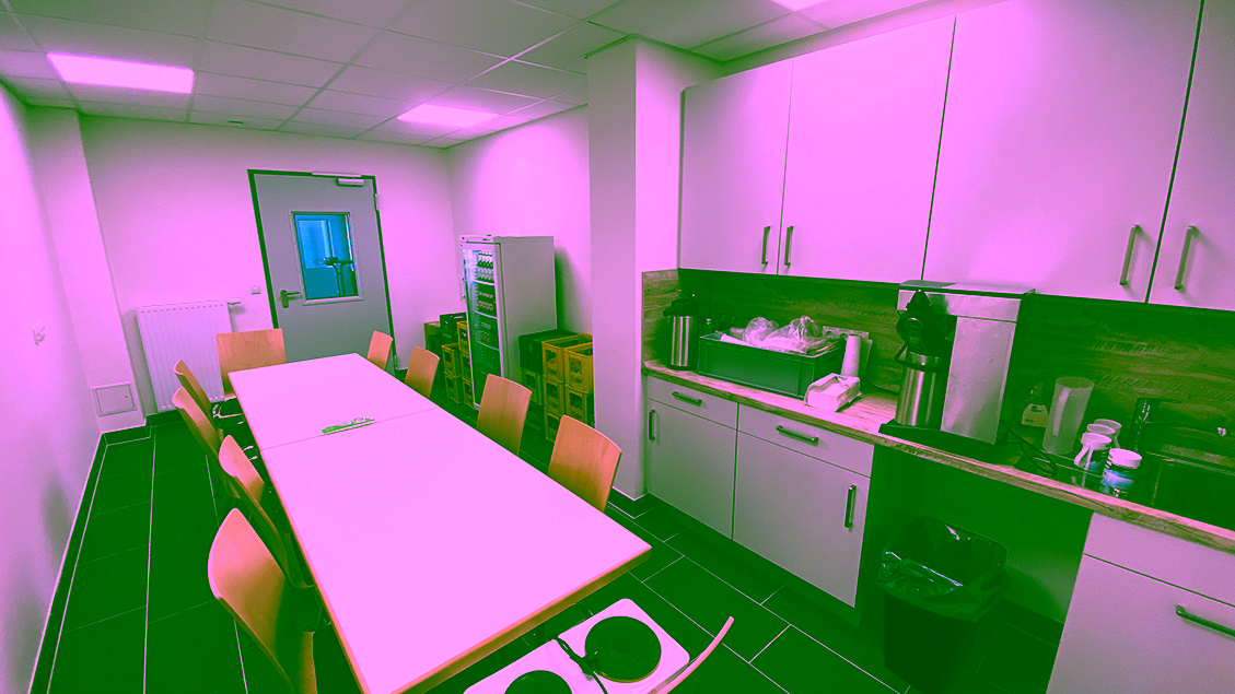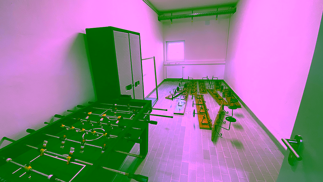Um den Wandbelag vor unschönen Abdrücken oder Beschädigungen – in Folge von zurück geschobenen Stuhllehen – zu bewahren, haben wir an den Wänden des Bereitschaftraumes Schutzbretter montiert.